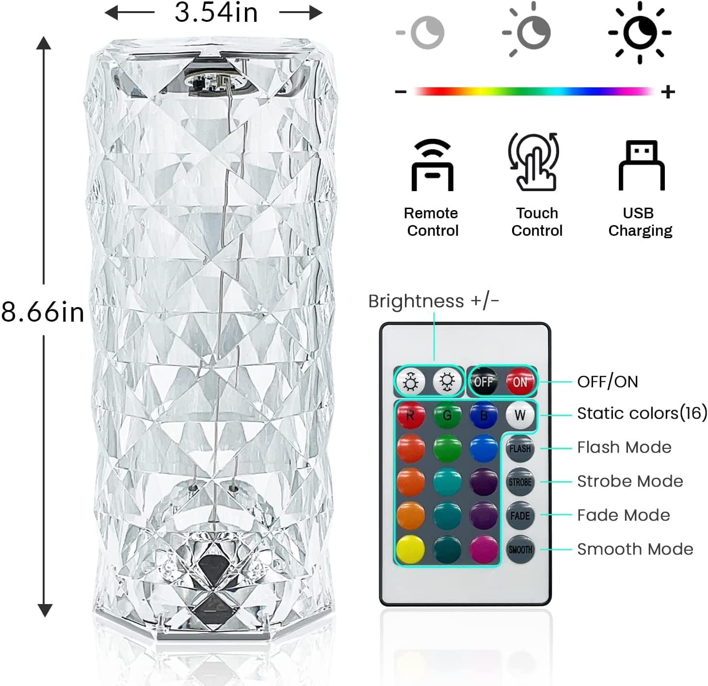 Rose Diamond LED Table Lamp16 Colors Rgb
